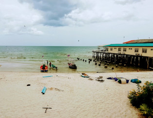 Friday morning we packed up and checked out. We had plenty of time since we had a 4pm train. We went to see the old part of Hua Hin where Mom and Papa stayed in the past. It was an old hotel built out over the water. Mom said you could see through the floor boards to the sea below.